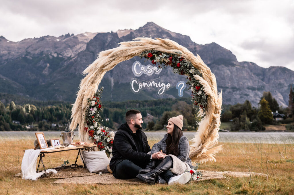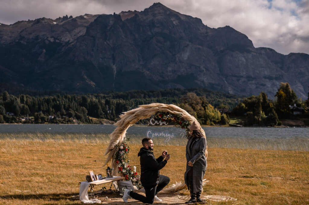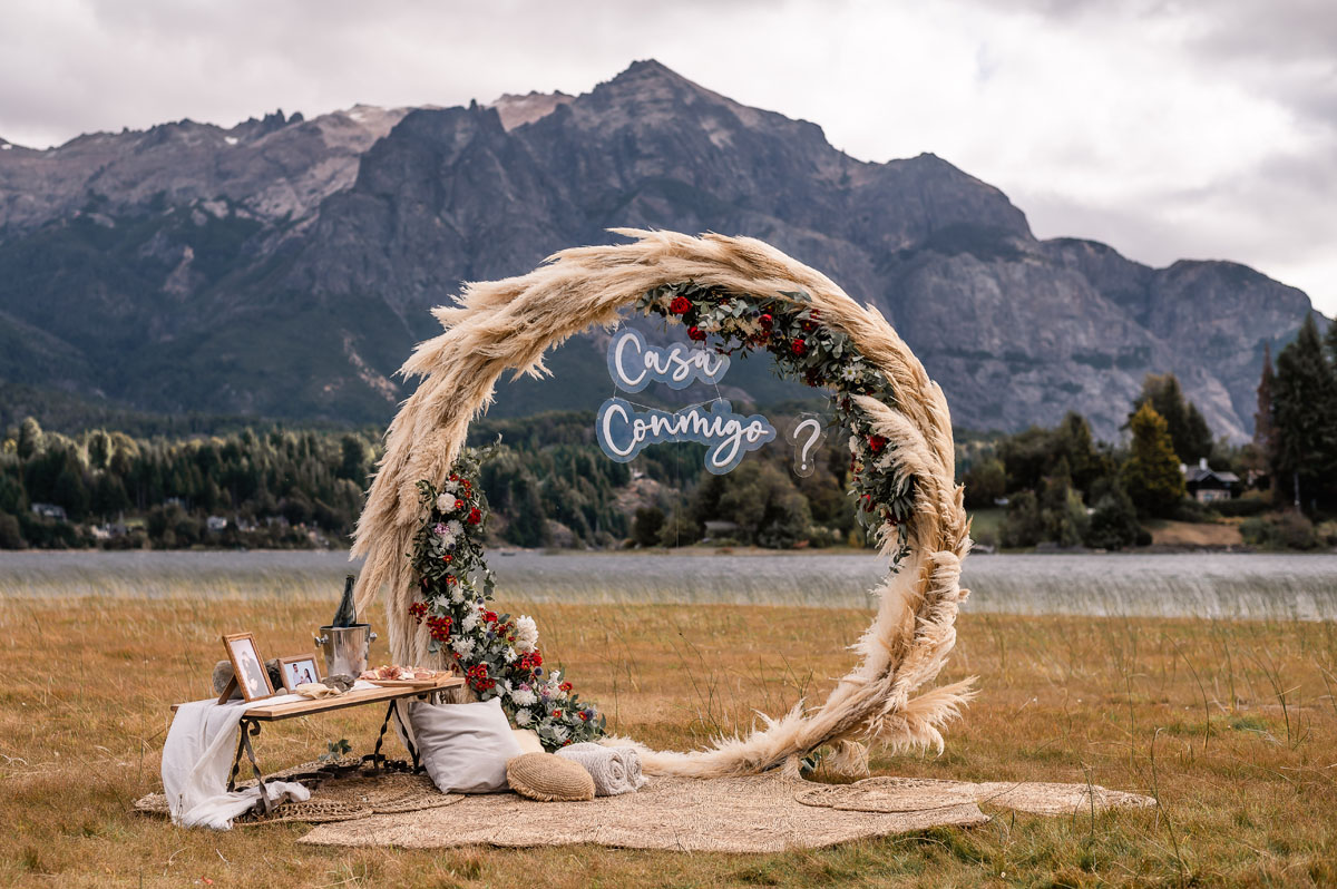 Em uma viagem em família para a Argentina, durante um passeio em Bariloche, ela foi vendada e encaminhada até o cenário que montamos para a surpresa com arco de flores, porta retratos com fotos do casal, o letreiro ‘’casa comigo’’ e um ambiente para que eles pudessem sentar e curtir O Pedido.